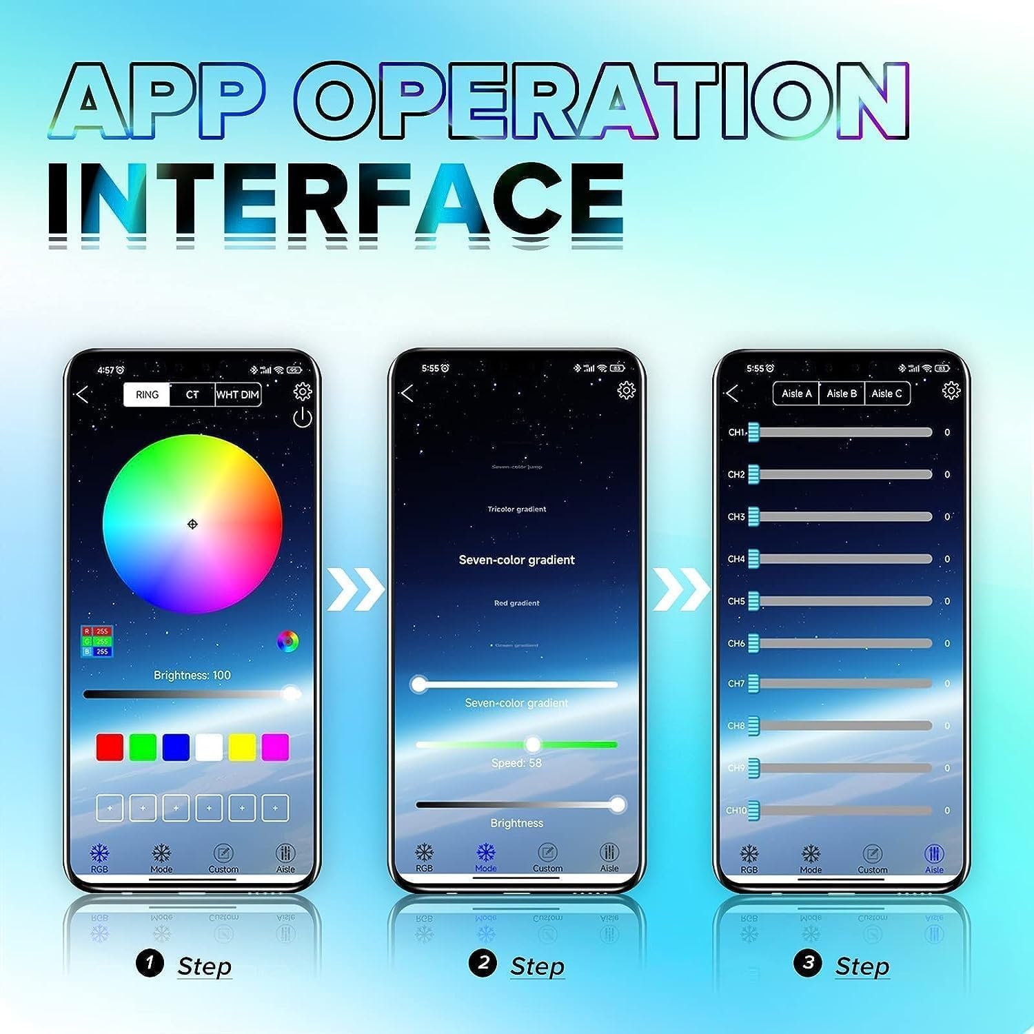 Contrôle facile et ultra-flexible Adaptez votre éclairage selon vos besoins : Connexion sans fil 2,4G pour une installation sans câbles. Contrôle via une application smartphone pour gérer couleurs et effets. Télécommande, DMX512, modes automatiques, commande vocale et fonction maître-esclave : choisissez la méthode qui vous convient.