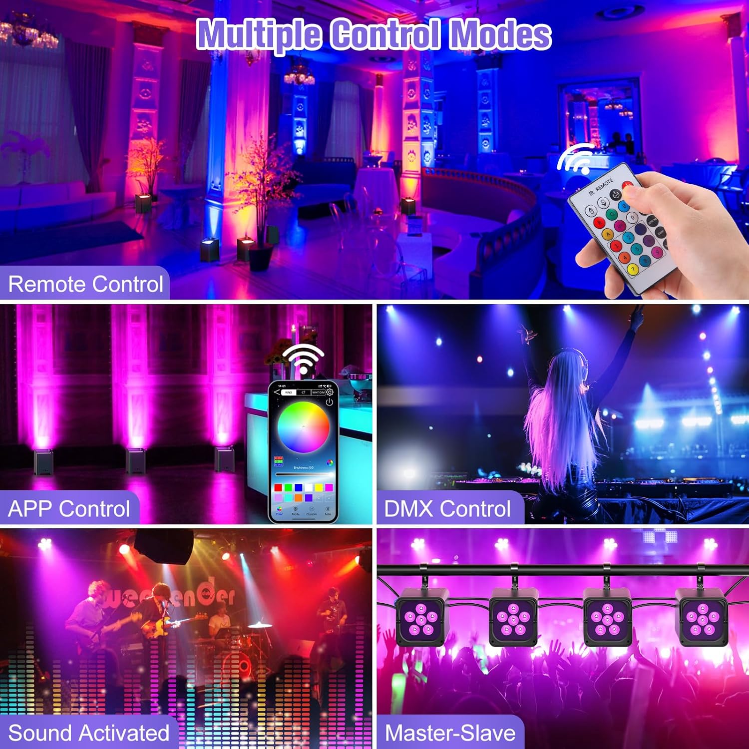 Pack ColorFête Pro – Lot de 4 Projecteurs LED RGBWA+UV 108W