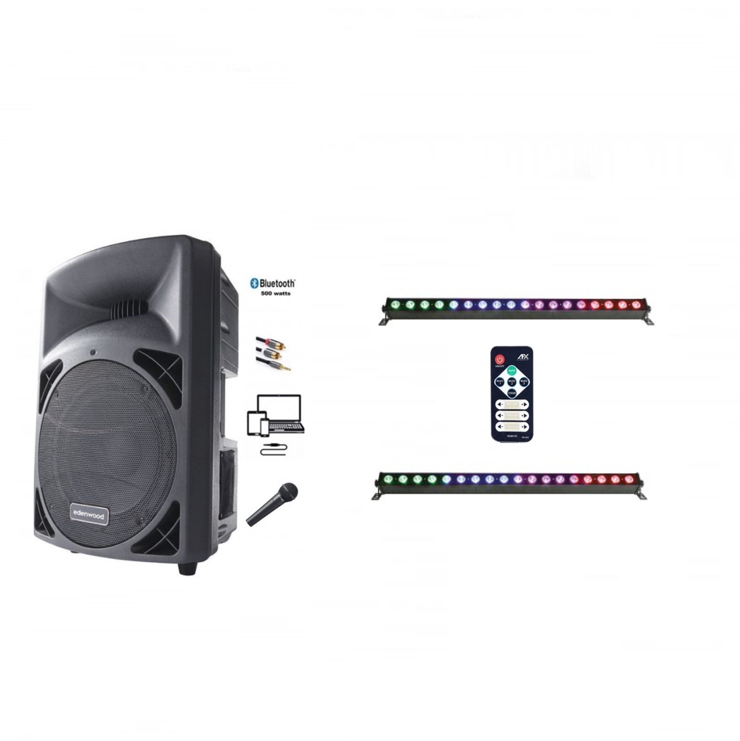 Le pack comprend une sono portable équipée de Bluetooth, USB, SD et LINE, ainsi que deux barres d’éclairage automatiques avec télécommande et un microphone filaire pour les discours ou les chansons. Avec une réduction de prix de 79€, ce pack est la solution idéale pour des événements tels que les anniversaires, les baptêmes, les mariages ou les soirées entre amis.