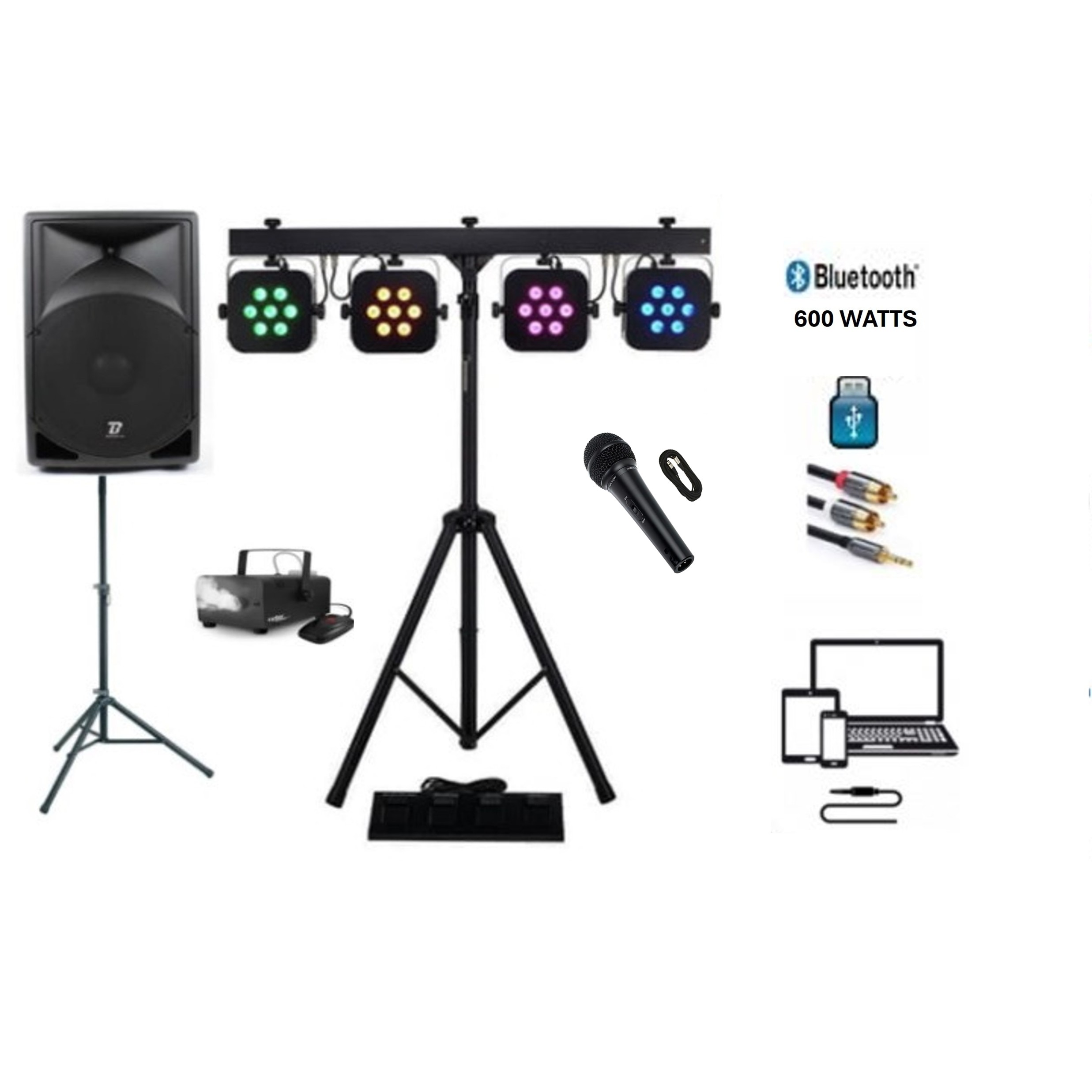 Plongez vos événements dans une atmosphère captivante grâce à notre Pack BT 600, comprenant une sono de 600 watts, un jeu de lumière, un micro filaire dynamique, le tout accompagné d’une machine à fumée pour une expérience sensorielle inoubliable.